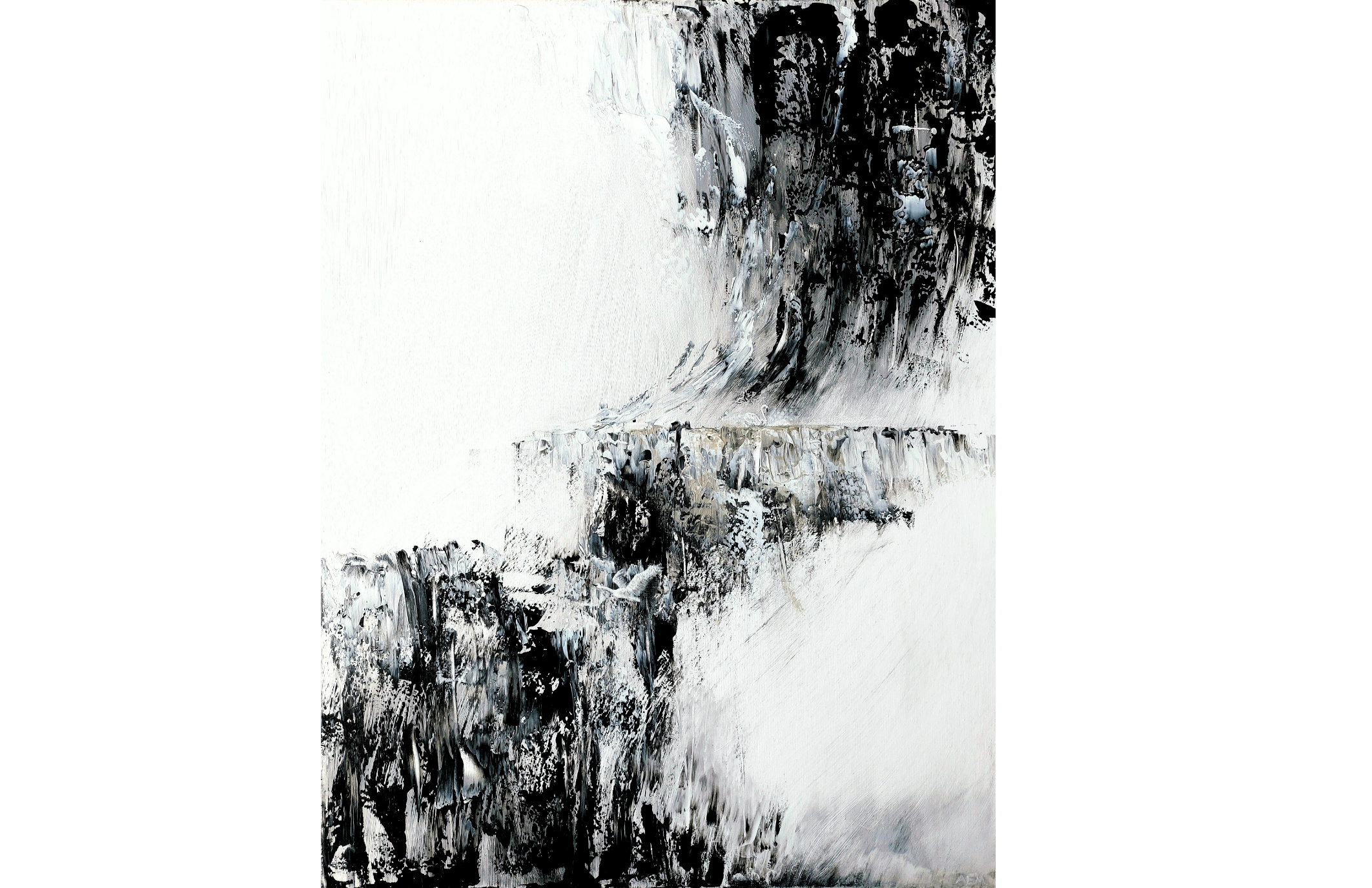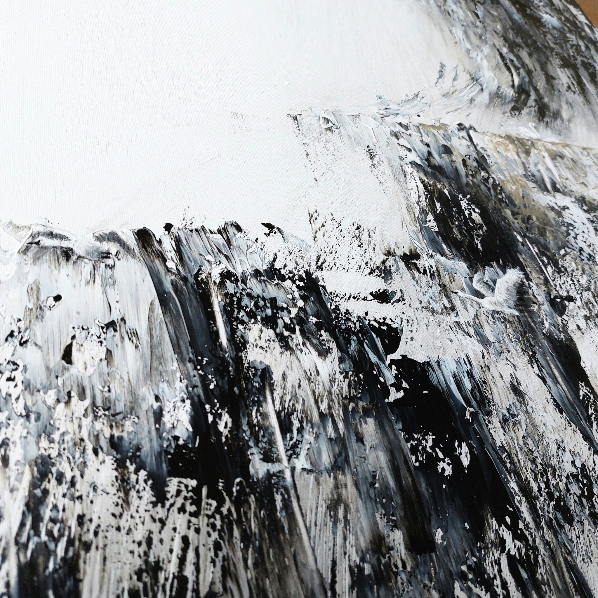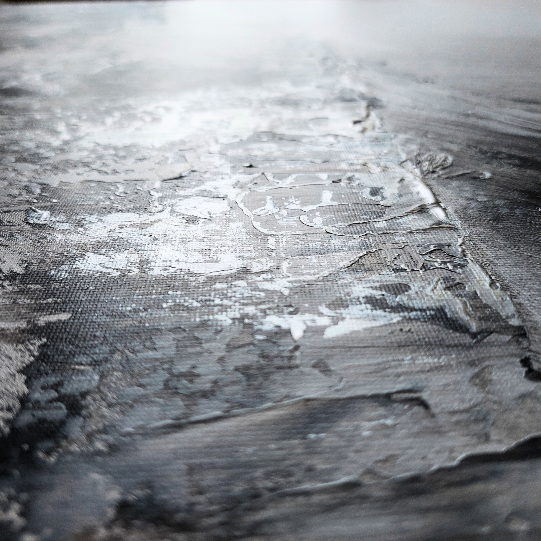 BOUND BY THE WIND - Drie zwanen, verenigd als één in de storm. Een krachtig beeld van samen vooruitgaan, ondanks alles. De zwaan is een trouw, sierlijk en bijna majestueus dier — een symbool van zuiverheid, innerlijke kracht en transformatie. Zijn elegante verschijning en doorgaans kalme aard herinneren ons eraan om rustig te blijven aan de oppervlakte, zelfs wanneer de zilveren wateren eronder onstuimig zijn. De gedetailleerde penseelstreken leiden je ogen over het doek, voorbij de storm, het zilveren meer en de scherpe afgrond, waar je onderweg drie zwanen ontmoet. Acryl op doek. 58 x 78 cm.