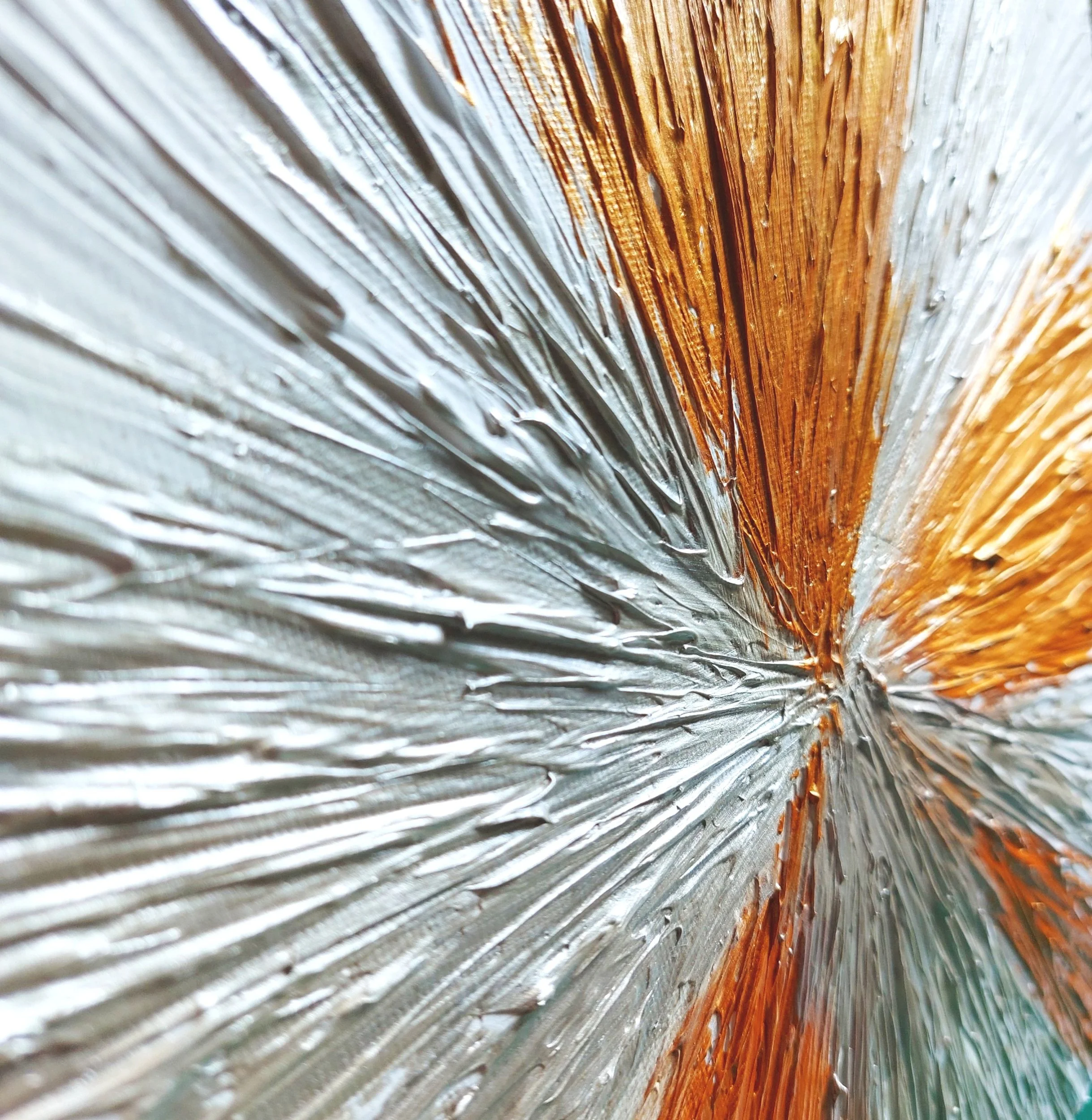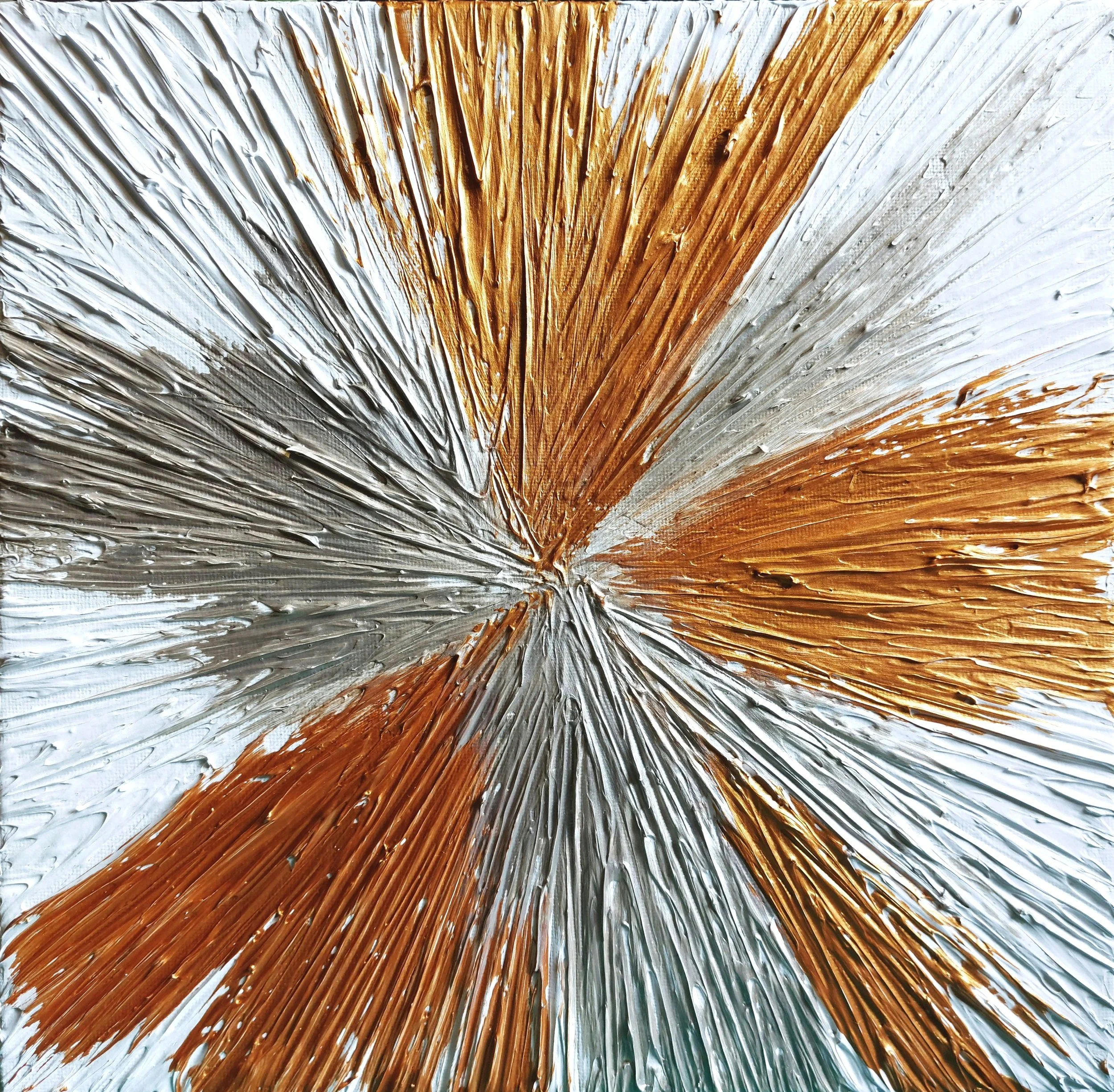 CELESTIAL IMPACT - Het begin van iets groots. Briljantie ontvouwt zich. Een explosie van energie waaruit iets nieuws ontstaat — een visuele oerknal vol potentie. Kracht die niet te temmen is. Het getextureerde oppervlak werpt intrigerende schaduwen, en net als bij de Big Bang schuilt er in het spel van licht oneindige mogelijkheid. Acryl op doek. 29 x 29 cm.